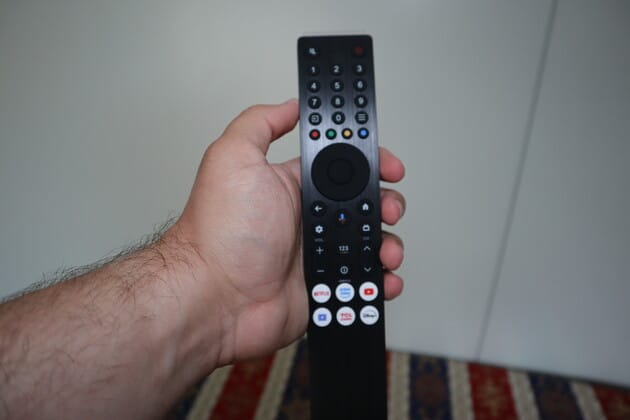 Telecomanda este una simplă nu vine cu ceva revoluționar, există și butoane speciale de acces a aplicațiilor smart precum Netflix, Prime Video, YouTube și Disney+. Există și un buton intitulat TCL Channel ce deschide o platformă specială creată de către TCL unde oferă conținut.